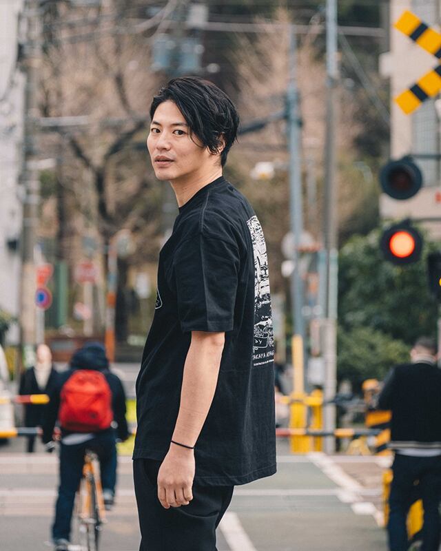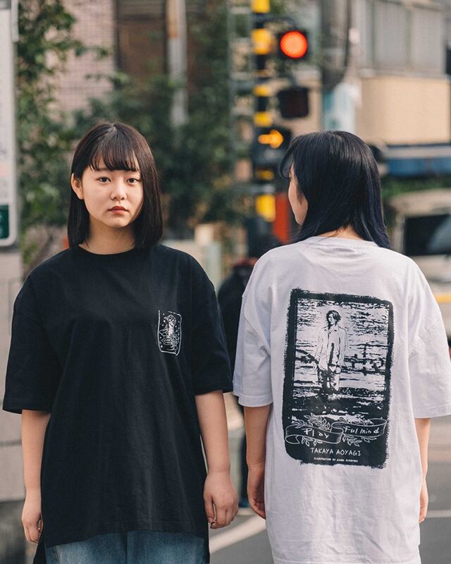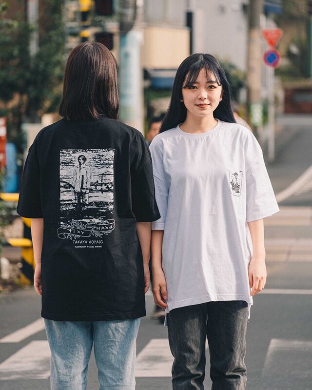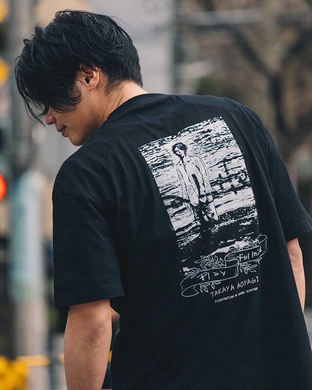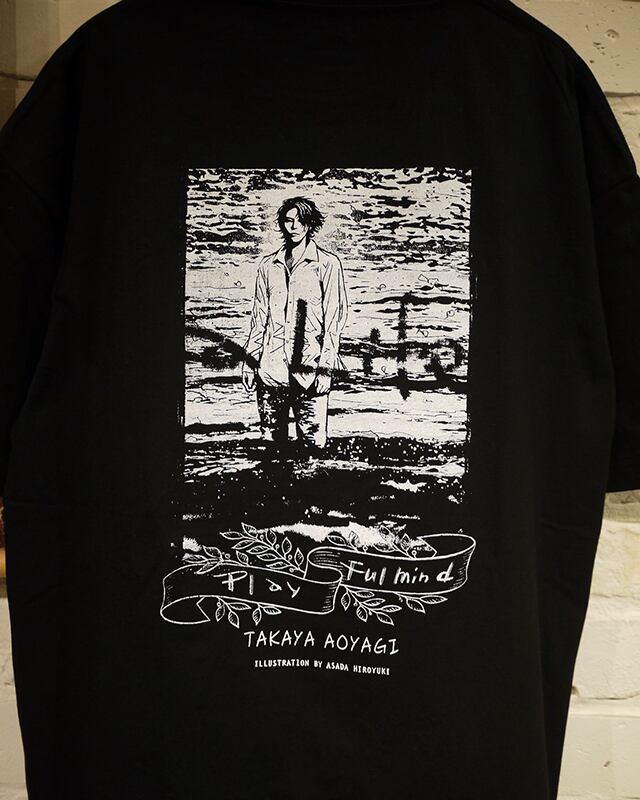 青柳の好きな動物『カエル』を浅田先生が生み出した、キュートでちょっぴりワイルドな『タカヤガエル』を左胸のワンポイントに、バックプリントにはロケ地となった茅ヶ崎の海の写真を浅田ワールドで表現!